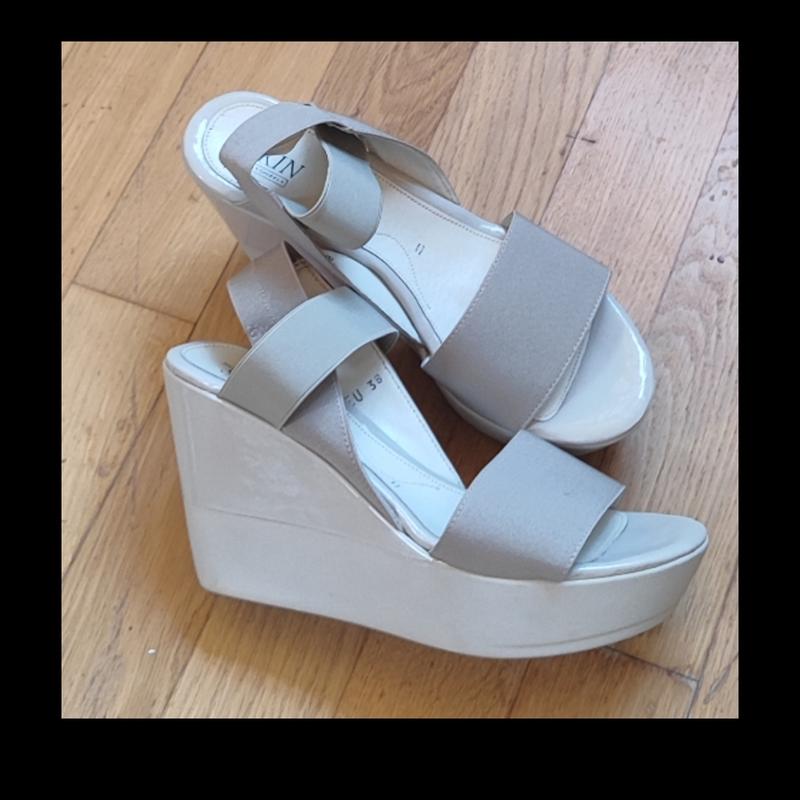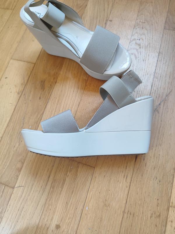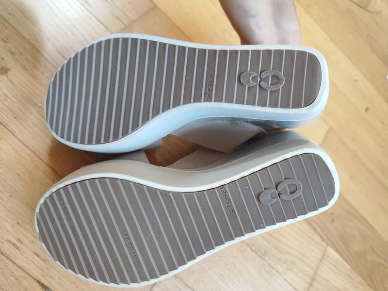 Босоніжки від stonefly second skin. Виготовлені і привезені з Італії.Устідка шкіряна. Шлейки з резинки,тому прилягають до ріжки ідеально. Є незначний дефект на платформі,фото добавила. Ціна виробника 99.9є, я ставлю значно нижчу ціну в зв'язку з не актуальністю моделі,та дефектом + деякі коробки значно пошкоджені. Є 38-(24см) 2пари, 39- (24.5см) 1 пара. Танкетка 9.5 см.