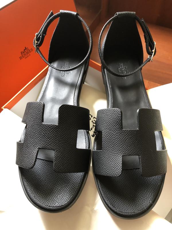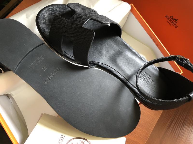 Босоніжки у стилі hermes exploring шкіра шкіряні чорні сандалі ерме натуральна