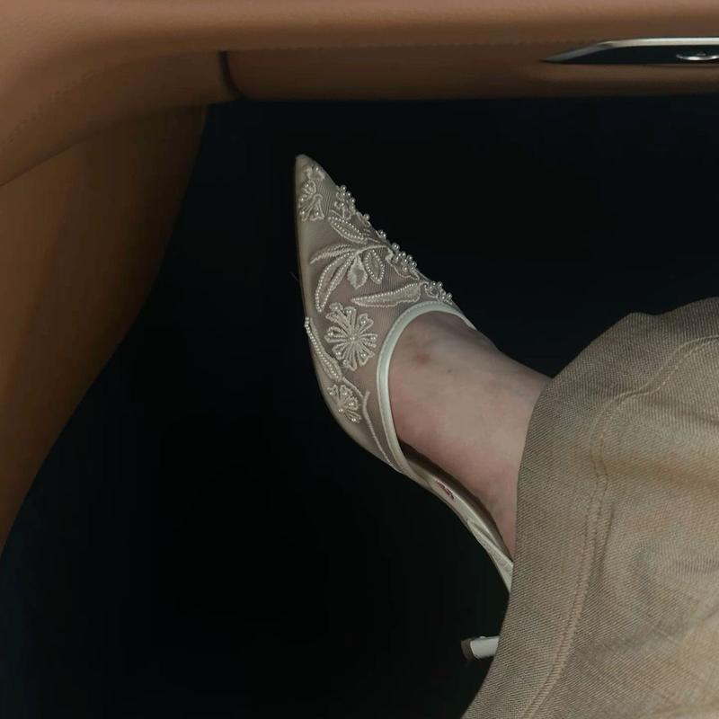 Бестселер! Під замовлення, викуп з ЄвропиНеймовірно красива модель✨Туфлі без задників на тонких підборах. Сітчаста тканина з вишивкою спереду. Еластичний ремінець ззаду. Гострий носок.