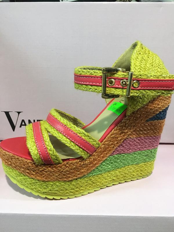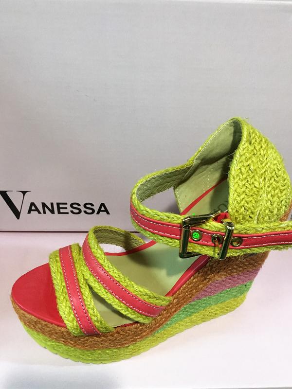 самі нові!наймодніші!молодіжні босоніжки на високій зручною стійкої платформи(5.5 -13 см)із закритою п'ятою,дуже яскраві ,всі модні кольори сезону в одній моделі,матеріал-модний елемент сезону -джутове плетіння ,в наявності розміри з 35 по 40,маломерят на розмір,фабрика Китай !Якість люкс!