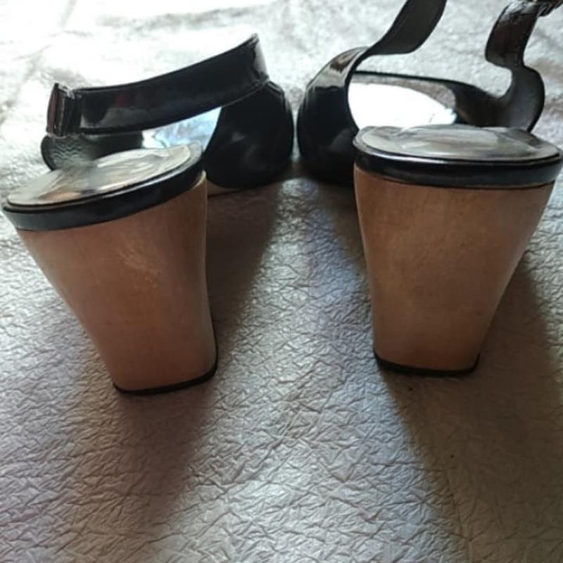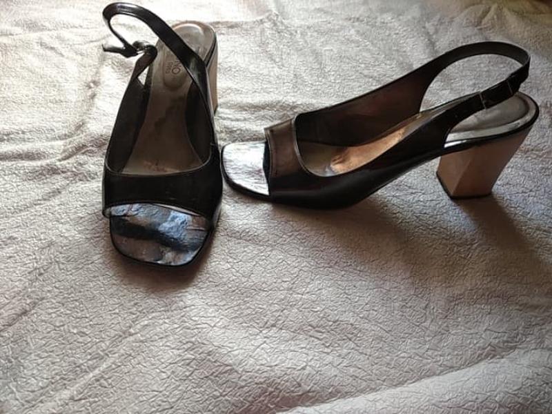 шкіряні якісні босоніжки на стійкому каблуці . стан видно на фото . висота каблука 8 довжина устілки 25.7 см