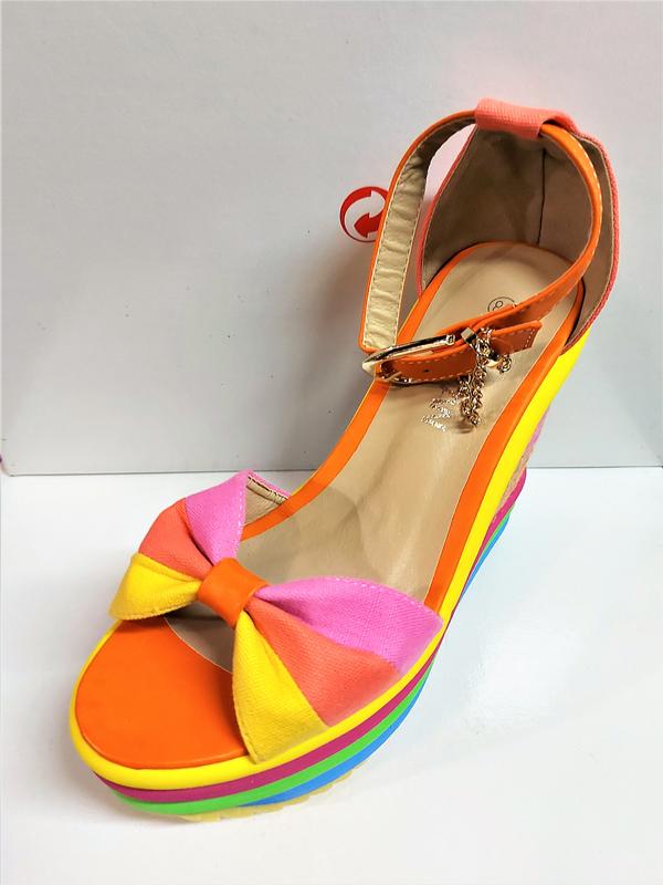 новинка!дуже стильні яскраві босоніжки на високій 3 кольоровий райдужної платформі (5-12 см) ,із закритою п'ятою .добре тримають ногу,платформа прикрашена модним елементом сезону-джутової ниткою,за кольорами добре поєднується з союзкой.,дуже легкі ,під прикид будь-якого кольору.в наявності розміри з 35 по 41.маломерят .фабрика Китай,якість люкс!є ще в ін кольорі