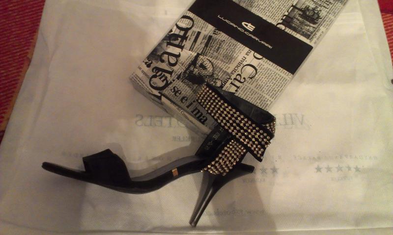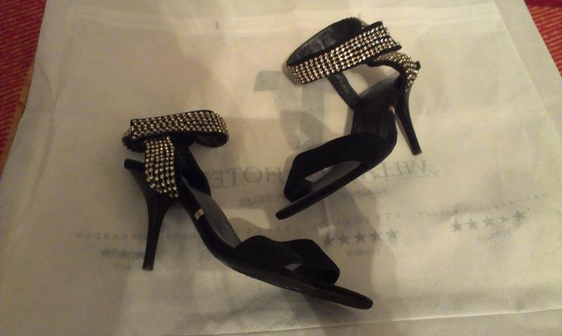 Вечірні замшеві босоніжки на підборах Luciano Carvari, розмір 35-35,5. Дуже їх люблю, але вже не ношу. Змінила каблук і набійку відповідно, чіп поміняла, тому на ній немає лого фірми, камені все на місці. На ніжці виглядають дивовижно, зручні. Є коробка.