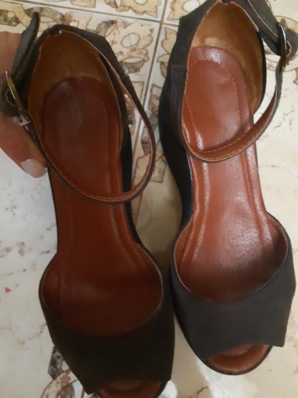 Босоніжки натуральний замочку, розмір 37, по стільці 23,5 см, вище платформа 9 см, нижче платфома 4 см, взувалися 1 раз, стан нових, стильні, легенькі.