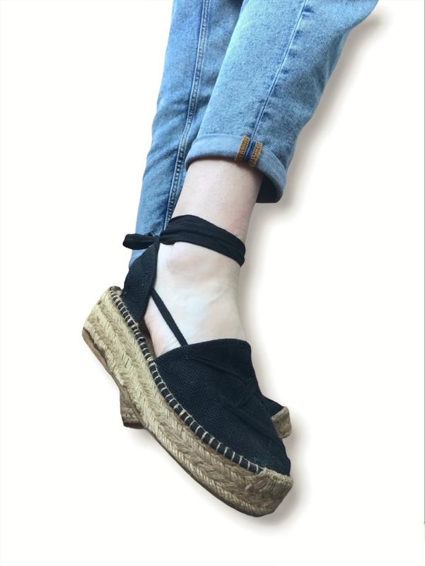 Закриті босоніжки чорного кольору під льон. Танкетка 3-5 див. 39 розмір. Довжина слетьки 24 див.