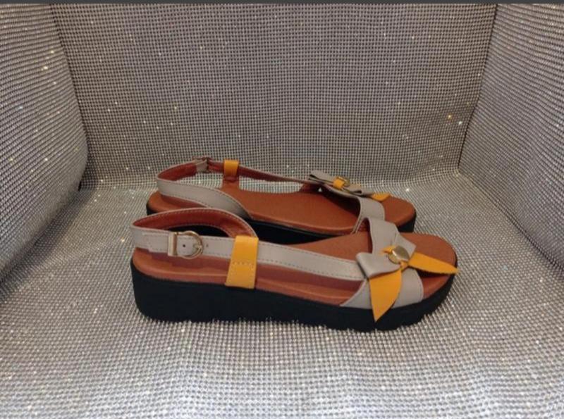 Босоніжки з натуральної шкіри колір візон з пісочним 38р - 24,6 див. Танкетка 3,5 див. Підошва зпереду 2см.
