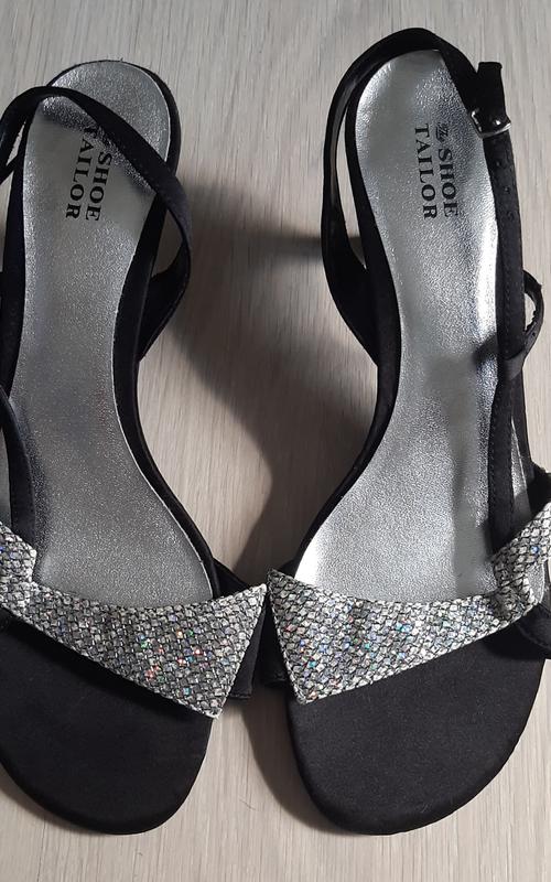 Босоніжки чорні атласні, каблук 5 см