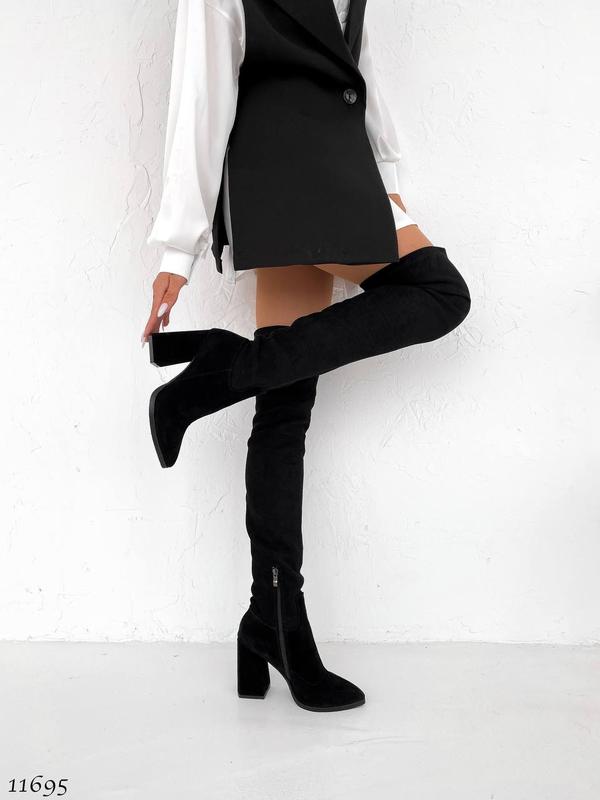 Новинка в наявності Код 11695 Ботфорти демі = ANDRO= колір: ЧОРНИЙ матеріал: низ НАТУР.ЗАМША, верх стрейч всередині: байка до щиколотки взуттєвий стрейч по всій довжині збоку робоча блискавка до середини висота від п'яти 61 см підошва: підбор 9,5 см ДОСТУПНІ ПІД ЗАМОВЛЕННЯ З 36 ПО 40 36= 23 см 37= 24 см 38= 24,5 см 39= 25 см 40= 25,5 см Вага 36р = 860 г Обхват гомілки 36 = 34 до 36 см 37 = 34,5 до 38 см 38 = 35 до 39 см 39 = 35,5 до 39,5 см 40 = 36,5 до 40 см