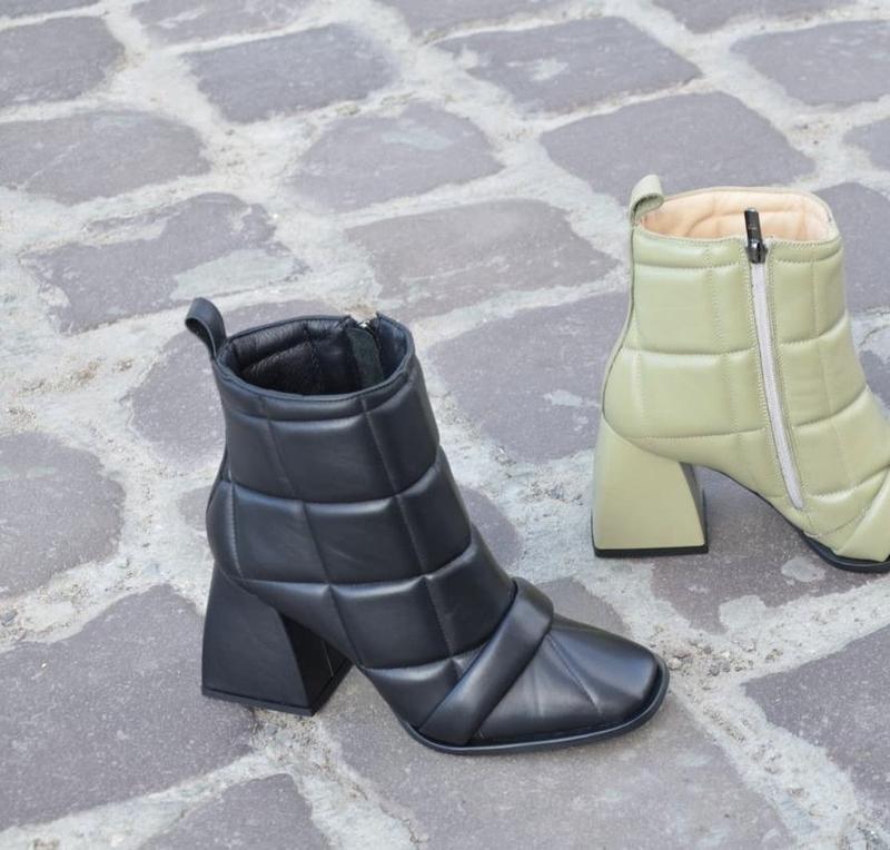 Новий тред "дутого" взуття ще нікого не залишив з байдужим поглядом 😋 Вони прекрасні по своєму, а головне можемо запропонувати різноманітний вибір палітри кольорів 🌈 Шикарні дуті ботильйони Натуральна італійська шкіра Внутрішній утеплювач- шкіряний підклад Висота каблука 8 см Висота виробу 12 см Обхват халяви 26-28 см Розмір у розмір Колір: олива, чорний Розмірний ряд: 36-40 Виробник Україна