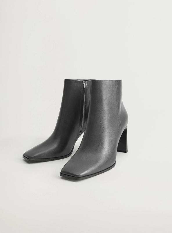 Ботильйони на прямокутних підборах mango, сірі черевики mango