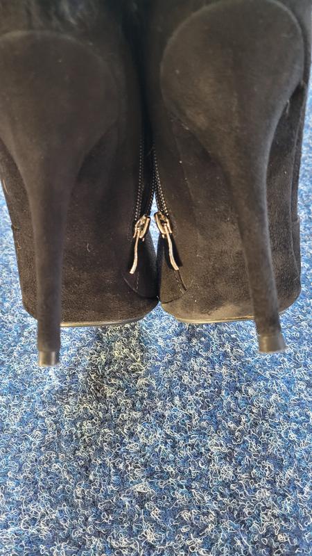 Замшеві напівчобітки, утеплені. Взувались 2 рази, стан ідеальний, підбори не стоптані. Розмір 39. Будуть добре на ніжку 24-24,5 см