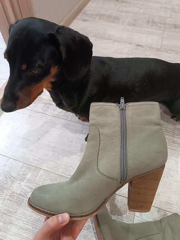 стан ідеальний натуральний нубук, гарний колір, дуже зручнівдягала до 5 разів, на ніжку 24,5-25 см, розмір вказаний 39, каблук 9 см, дуже стійкий