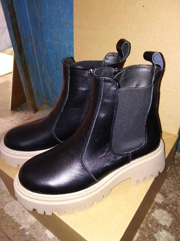 Черевички шкіряні Челсі, підшивка хутро натуральне (овчинка), чорний колір, бежева підошва. Розмірність відповідає! 36, 37, 28, 39, 40 розміра