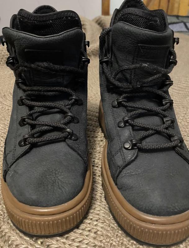 Продам свої черевики Puma. Стан ідеальний. Шкіряні, міцна підошва, якісна. Всередині клімат-контроль, зручна устілка. Взимку не холодно, навесні-восени не спекотно. Виглядають стильно, підійдуть як під спортивний одяг, так і під сукню худи. Дуже класні. Ідеально сядуть на вузьку ногу. Не зчесані, не потерті. Є один єдиний нюанс - порвалися шнурки, що легко можна виправити та купити нові. Скину додаткові фото якщо треба. Купувала у спортивному магазині Puma набагато дорожче, ніж віддаю. Розмір 37, на ногу 23,5 см