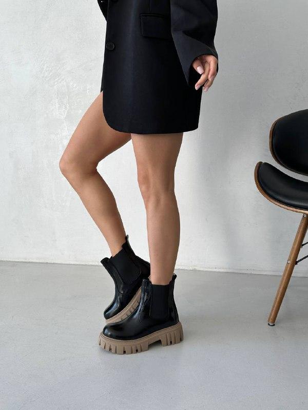 Сезон: демі Розмір: 35-41 Колір: чорний Матеріал: шкіра наплак Всередині: байка Підошва: поліуретан Висота без підошви: 14см Підошва: 3,5-5,5см Об'єм верху: 24см+гумка Устілка: 35-23см 36-23, 2см 37-24см 38-24,5см 39-25см 40-26см 41-26,5см, на середню ногу, невисокий підйом 5588-2д