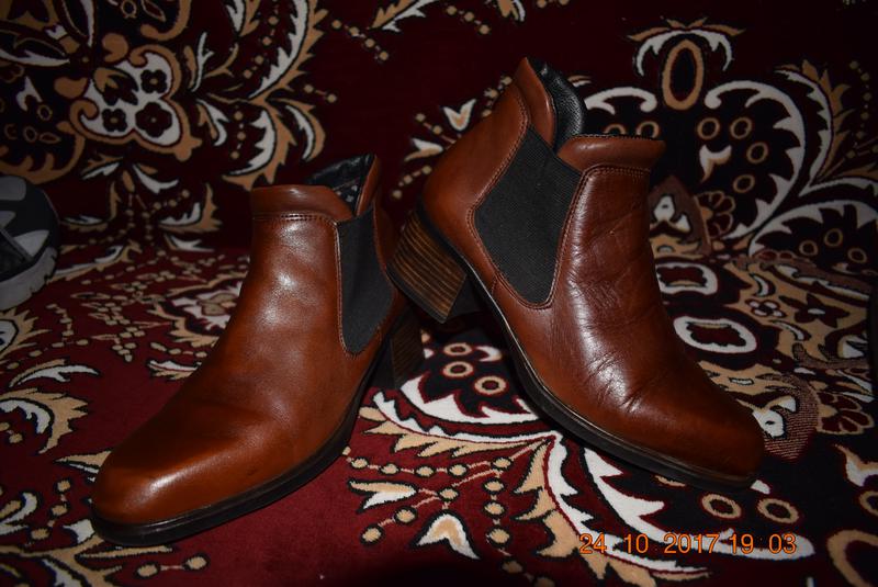 Черевики демісезонні Rieker.В цілому дуже гарний стан,натуральна шкіра,всередині тонкої поролон,підошва не подтерта,на одному полуботинке шкіра м'якше(на фото видно).Розмір вказаний 38,довжина устілки 24см.Якщо виникли запитання-пишіть,дзвоніть.Вдалих покупок!