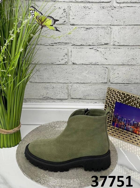 Матеріал: Натуральна шкіра/замшаСезон: демісезонні Підкладка: байкаВисота черевика: 13 смВисота підошви: 4,5 смРозмір: 36-41.Артикул: мокко шкіра 37750оливка замш 37751чорна замша 37752чорна шкіра 37753