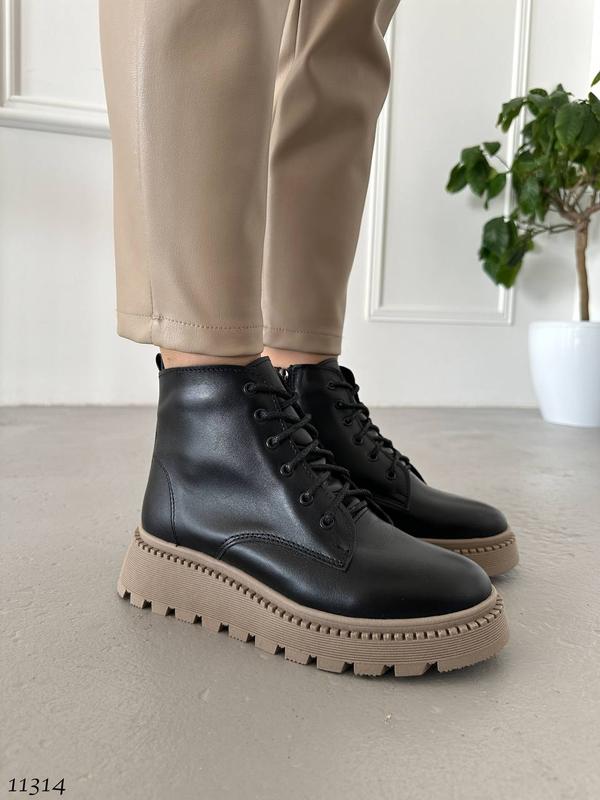 Код 11314 Зимові черевики колір: ЧОРНИЙ матеріал: НАТУР. ШКІРА всередині: набивне хутро (у складі 30% овчини) збоку робоча блискавка висота від п'яти 10,5 см підошва: спереду 2 см позаду 4,5 см вироб.- Україна 36= 23 см 37= 23,5 см 38= 24,5 см 39= 25 см 40= 25,5 см 1950 грн