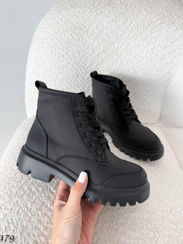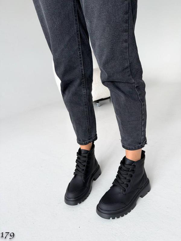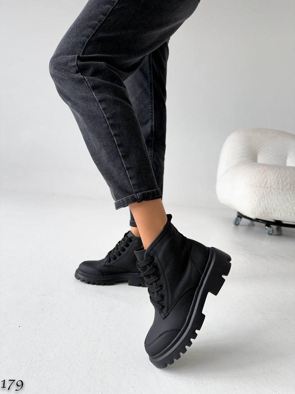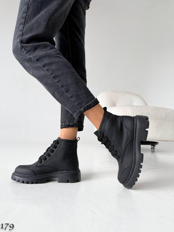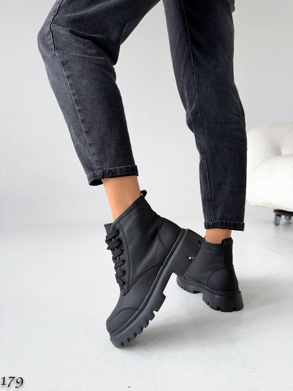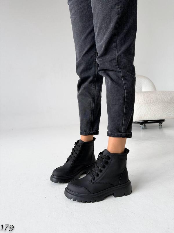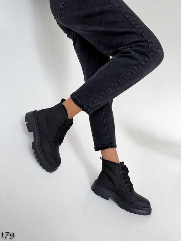 Код 179 Черевики Демі, колір: Чорний, матеріал: НАТУРАЛЬНА ШКІРА( матова) всередині: Байка висота від пятки 12 см підошва сзаду 4 см спереду 3 см виробник Україна дуже легкі