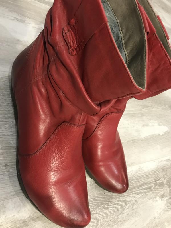 Чоботи шкіряні MARC art of walking. Нові. Не ZARA! Бездоганна якість. Добротна натуральна шкіра. Оригінальне, стильне та зручне взуття саме для Вас! Є в наявності червоні!🔥❤️ Розмір 39. Довжина по устельці 26 см. На ногу 25-25,5 см. Ширина 8,3 см. обхват голища 34см висота загалом 22 см кожа натуральна зверху, всередині штучний мех Чоботи шкіряні. Нові. Бірку зняла, бо один раз вигуляла, а далі зберігала у коробці. Бездоганна якість. Країна виробник - Німеччина! Оригінал. Добротна натуральна м"ягесенька шкіра. Всередині утеплені - фліс! Підійдуть на теплу зиму. Оригінальне, стильне та зручне взуття саме для Вас! История бренда Компания MARC была основана в 1938 году в Нижней Саксонии. Сначала это было кустарное производство, обеспечивающее обувью близлежащие деревеньки. Сейчас выпускается более 1 миллиона пар обуви MARC в год. Сегодня MARC — крупная международная компания, ориентированная на научные разработки. Вся их обувь характеризует современный, понятный, актуальный дизайн. Применяемые для изготовления материалы соответствуют самым высоким стандартам.