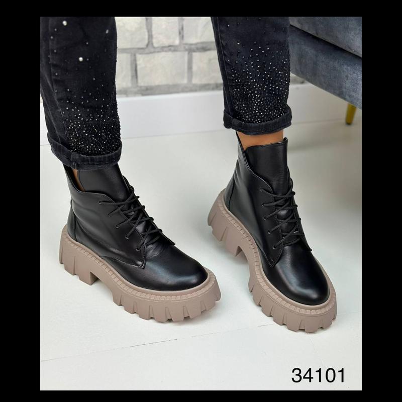 Демісезонні жіночі шкіряні черевики на об'ємній підошві