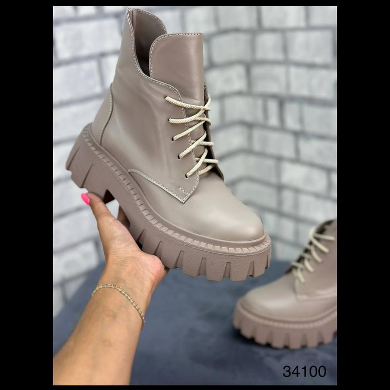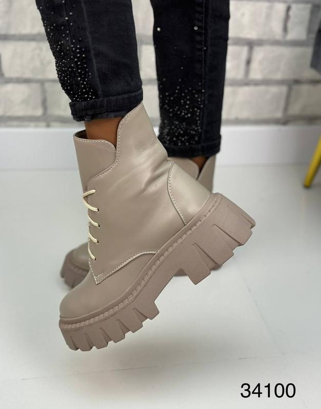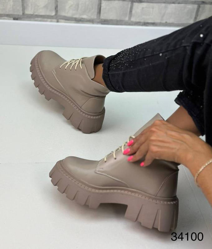 Артикул: мокко шкіра 34100Матеріал: натуральна шкіра Сезон: демісезон Підкладка: байка Висота підошви: 5 см Висота чобота: 13 см Розмір: 36-41