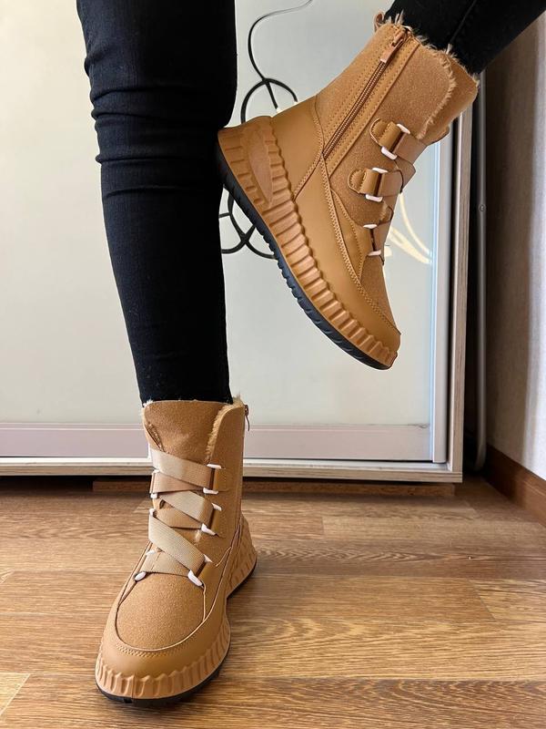 Зручні жіночі черевики з екошкіри на хутрі коричневі хакі