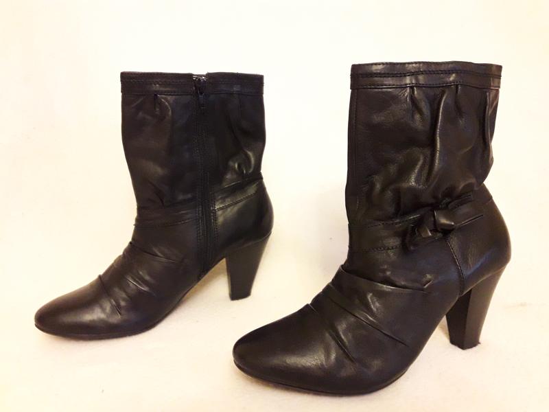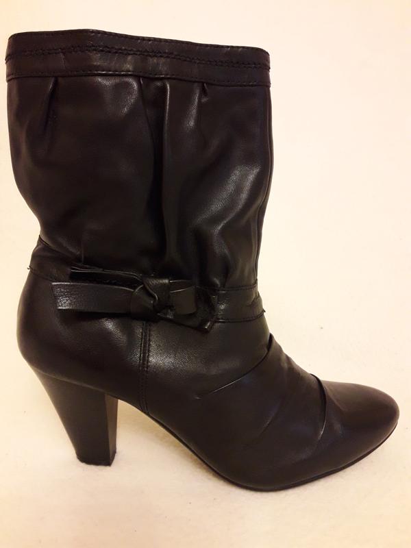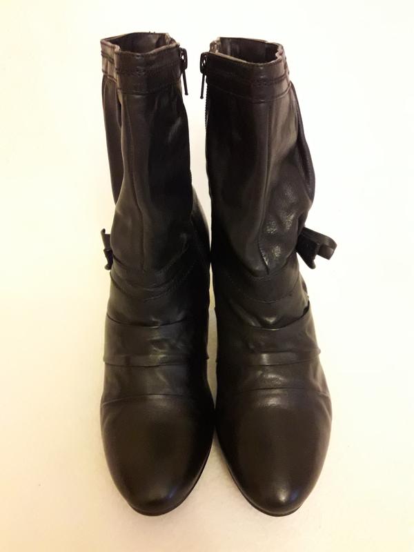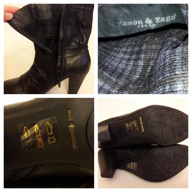 Шкіряні підлозі чобітки фірми Zanon & Zago p. 39 устілка 25,5 див. У відмінному стані. Оригінальні, якісні та дуже зручні чобітки. По боках блискавки, Елегантний бантик. Каблук 7,5 див. Натуральна шкіра. Дуже ефектно виглядають на ніжці. Виробництво Камбоджа. ШДСП2