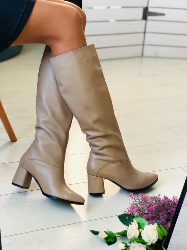 По желанию покупателя можно изменить цвет кожи и замши ,уменьшить или расширить голенище( индивидуальный пошив),вставить змейку (или без змейки) а также каблук 4, 6,8,9см ( на выбор)