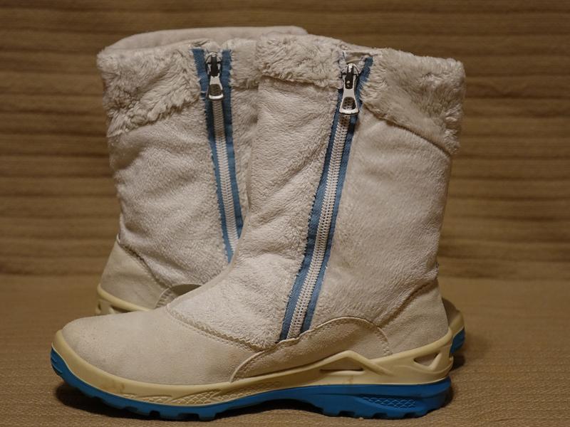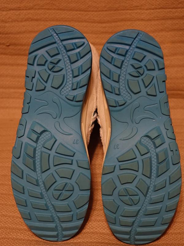 Німецька компанія Lowa виробляє взуття з 1923 року. Її батьківщина знаходиться в Баварії, трохи на північ від Мюнхена, в передгір'ї Альп, де завжди була необхідна хороша взуття. Більше 80 років кілька поколінь баварських альпіністів допомагали компанії накопичувати безцінний досвід, який сьогодні є запорукою успіху Lowa. Один із секретів фірми – унікальні колодки, для створення яких інформація збиралася десятиліттями, і зовсім не секрет, що взуття Lowa зручна більшості людей. Особливу увагу Lowa приділяє жіночого взуття, яка враховує всі особливості будови жіночої ноги. Поєднання традицій, майстерності, високоякісного ручного праці, інноваційних матеріалів і технологій дає компанії можливість створювати надійну і комфортну взуття, яка має право носити ім'я Lowa. Продаються фірмові легкі фірмові півчобітки знаменитого німецького спортивного взуттєвого бренду Lowa. Верх взуття виконаний з комбінованих синтетичних матеріалів: м'яка щільна поліестерова тканина кольору слонової кістки ( нижня частина виробу, вузькі вертикальні вставки спереду і ззаду, мягчайшая вставка з флісу молочного кольору - основна частина моделі і м'який короткий штучне хутро молочного кольору - скляна вставка у верхній частині чобітків. На внутрішній бічній поверхні вшита блискавка, під якою знаходиться цілісна поліестерова вставка молочного кольору. На зовнішній бічній поверхні шовковистим блакитними нитками вишита назва бренду. У верхній частині задника пришитий світловідбиваючий лейб бренду. Виворітна сторона виробу має м'яку дихаючу фірмову Gore-Tex світло-сірого кольору. Між підкладкою і верхи вироби є невеликий шар утеплювача, що дозволяє носити взуття на досить холодну пору. Але враховуючи колір кросівок, на негоду вони все-таки не підійдуть - дуже мазкі. По верхньому краю проходить флісова окантовка ( 5,5 див). Устілка фірмова м'яка знімна. Верх - щільний м'який текстиль світло-сірого кольору. Подошва - фирменная подошва бренда. Элементы мягкой резиновой подошвы цвета слоновой кости выходят на верх изделия, выполняя и функциональные ( поддержка ноги, защита), так и эстетические функции .Технология Monowrap предназначена для поддержки ноги. Данные элементы межподошвы выполняют как защитные функции - защита голеностопа, так и фиксируют ногу в правильном положении.