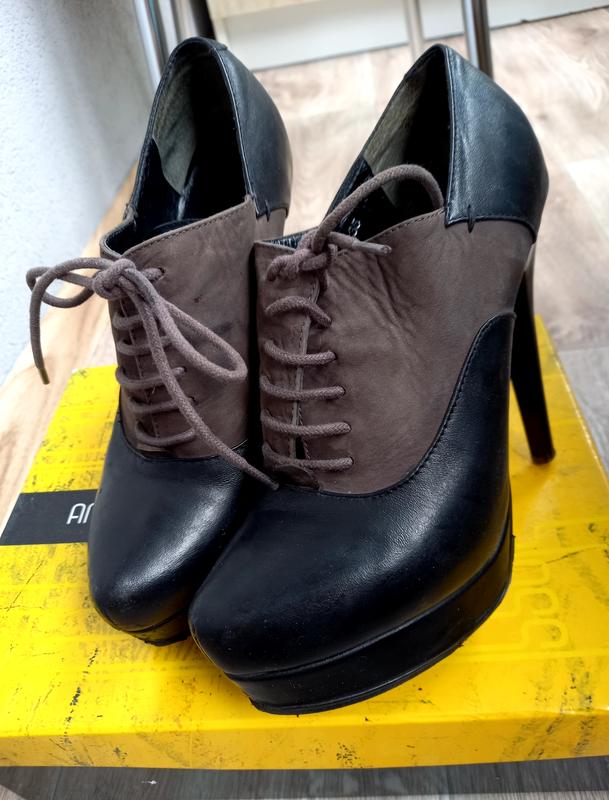любительки високих підборів , неймовірно красиві і якісні, повністю шкіряні ботильйони черевики Antonio Biaggi. 36 розмір. На стопу 23см. Шкіряна устілка. Гарний стан. Всі нюанси на фото , трохи ремонтувалася підошва і набійки змінювалися. Для мене після декрету каблук високий, раніше дуже подобалося в них ходити. Красиві.