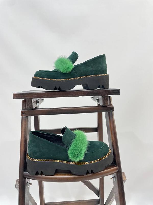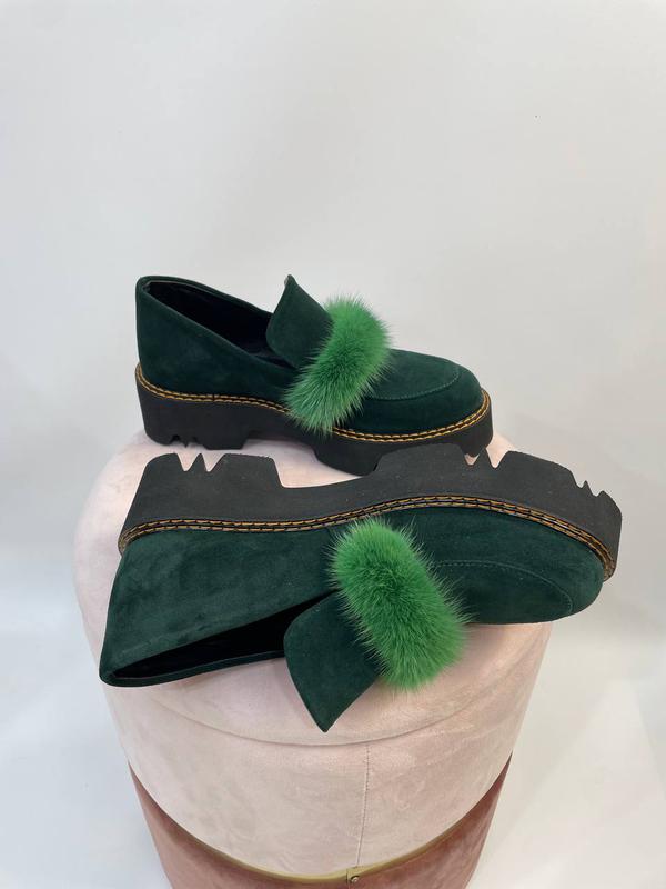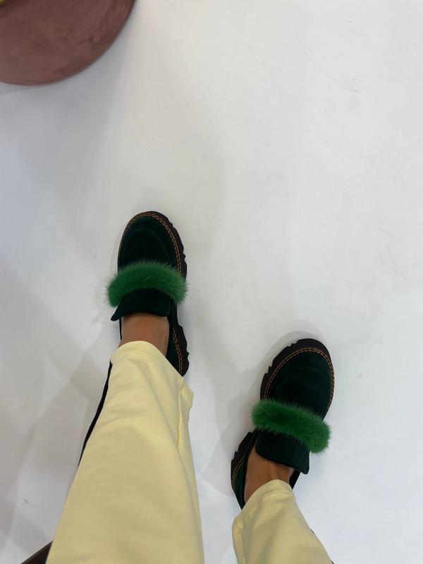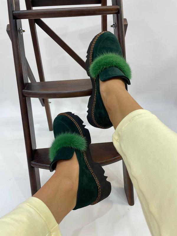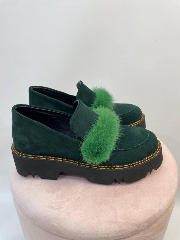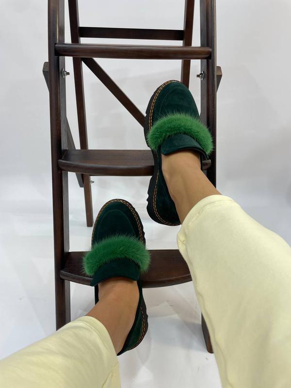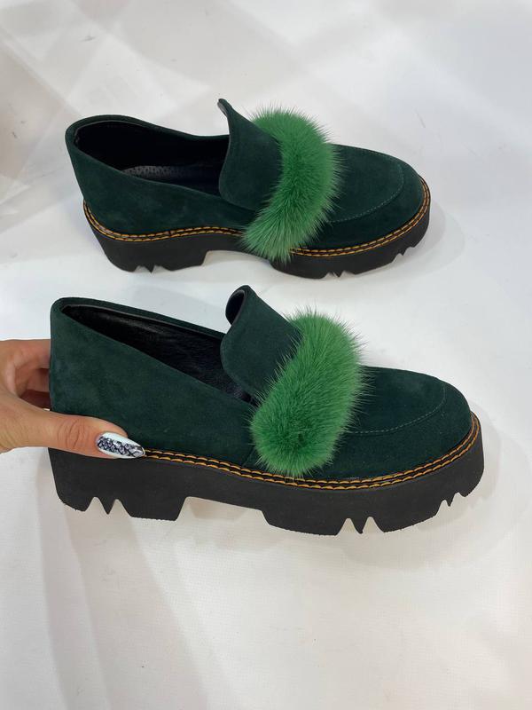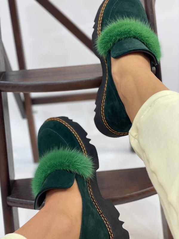 Лофери з натуральної італійської шкіри та замші жіночі з норкою
