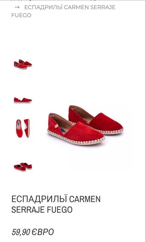 Еспадрильї Verbenas CARMEN SERRAJE FUEGO Колір Fire Red 39 розмір натуральна замша. Взувала пару раз на вулицю.