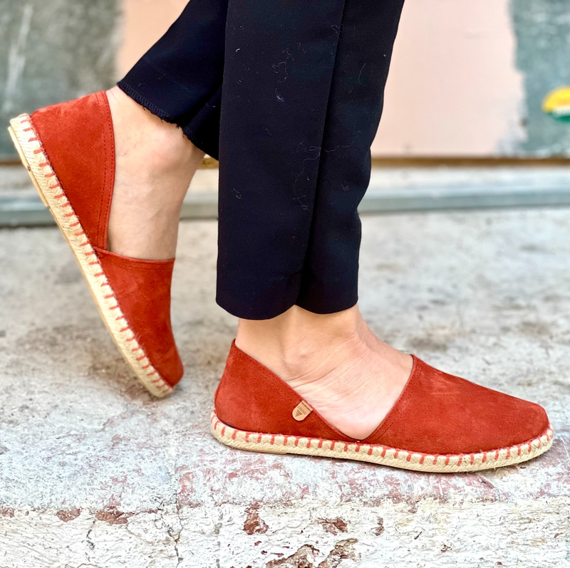 Культові еспадрільї Carmen кольору Fire Red. Вони виготовлені із замшевого матеріалу, шкіряної підкладки та підошви, а також джутової та гумової підошви. Ідеальна модель цього сезону. Стильні та зручні для повсякденного носіння. 100% Verbenas!