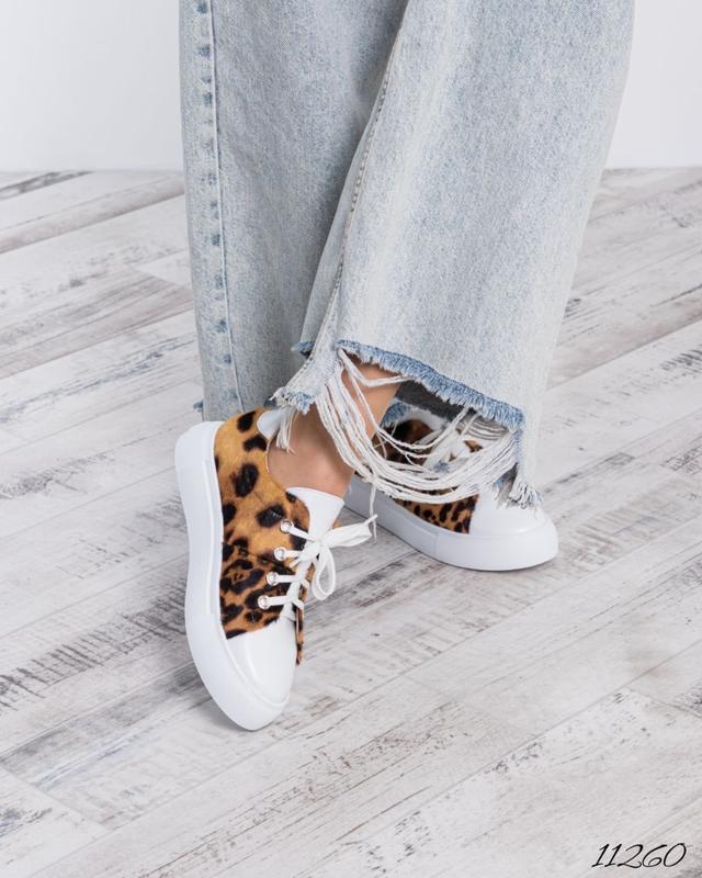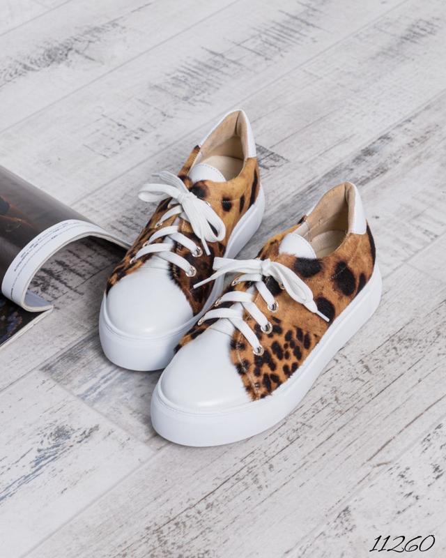 Стильні кедиНатуральна італійська шкіра/хутро “поні”Всередені шкіряний підкладВисота підошви 4/3 смРозмір в розмірКолір білий/леоРозмірний ряд: 36-40Виробник Україна