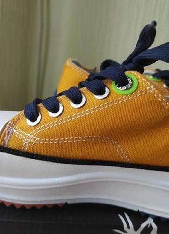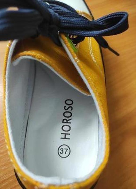 Дуже гарні кеди , яркі,текстильКолір чудовийНовіЛегесенькіУстілка 23.5М'якіКупила собі,але ношу все на каблуку,тому так і не наважилася )