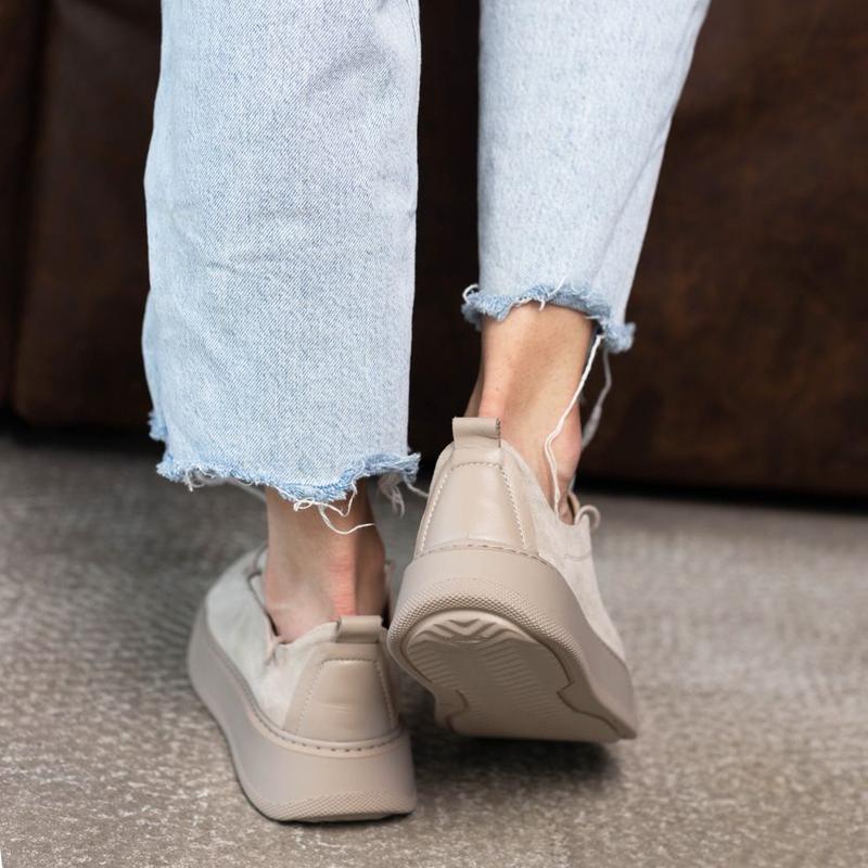 Представляємо вам жіночі замшеві кеди, які стануть найкращим вибором для повсякденного носіння в осінній період. Завдяки універсальному кольору, вони гармонійно доповнять будь-який образ. Кеди виготовлені з якісної замші, що робить їх легкими (вага півпари - 320 грам) та практичними. Внутрішня шкіряна підкладка та шкіряна просиліконена устілка надають їм легкість та комфорт. Підошва виконана з матеріалу ТЕП, забезпечуючи неперевершену зручність та надійність під час носіння.
