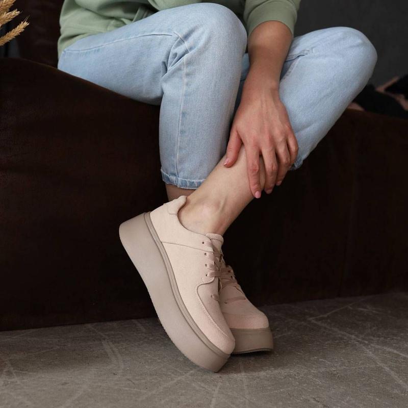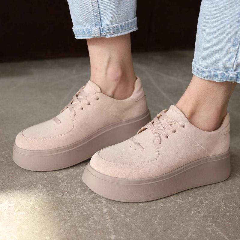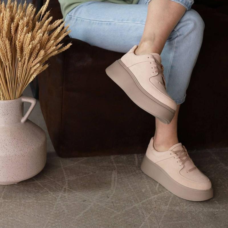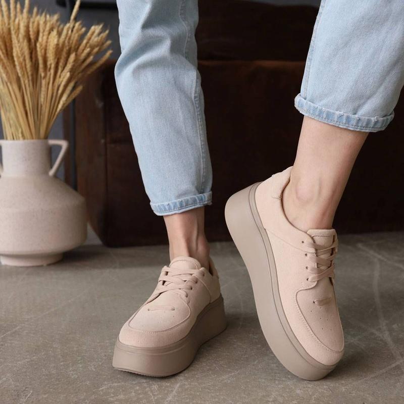 Класична модель кедів 4S 585123 в універсальному бежевому кольорі. Пара виготовлена з натуральної замші, легка, вага півпарку всього 310 грам. Внутрішня підкладка шкіряна, устілка шкіряна . Кеди універсальні, гарно виглядають на ніжках та чудово підкреслять Ваш образ.