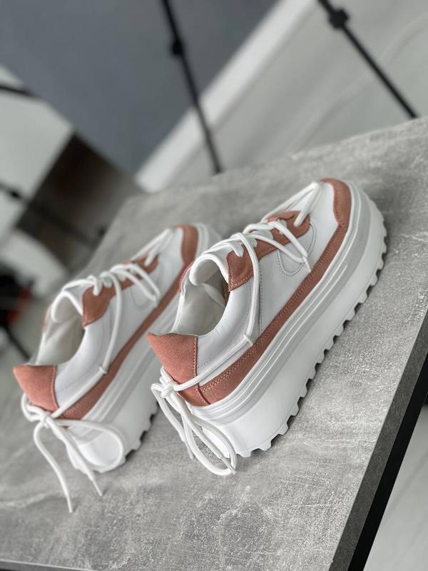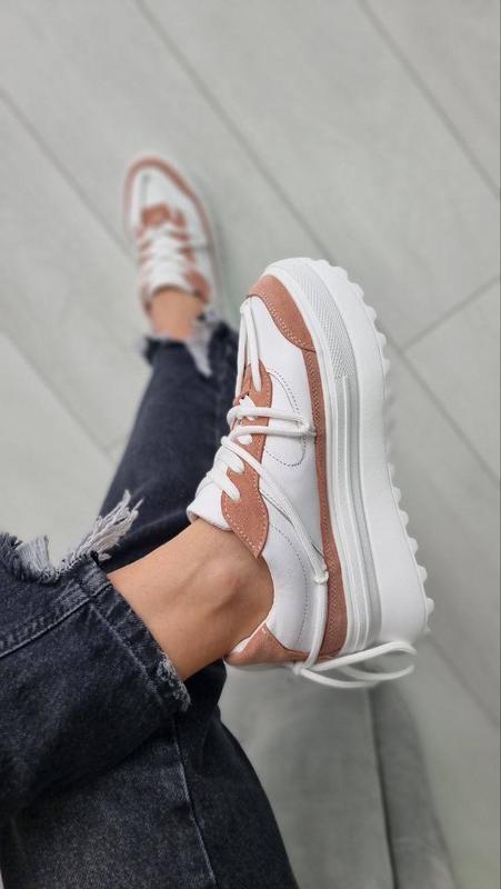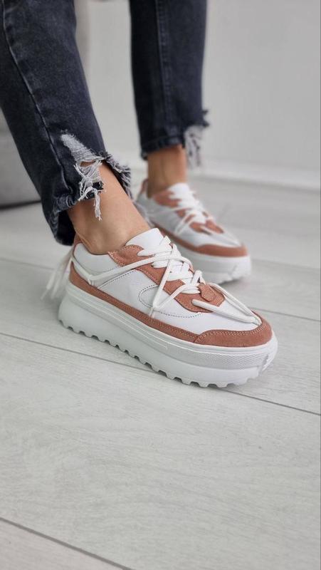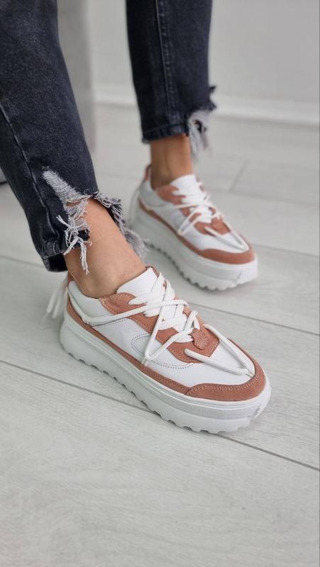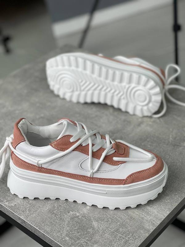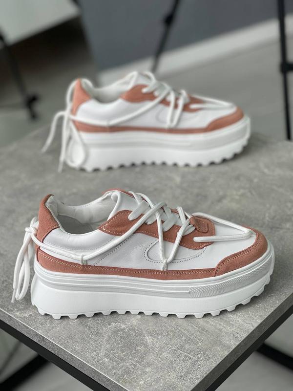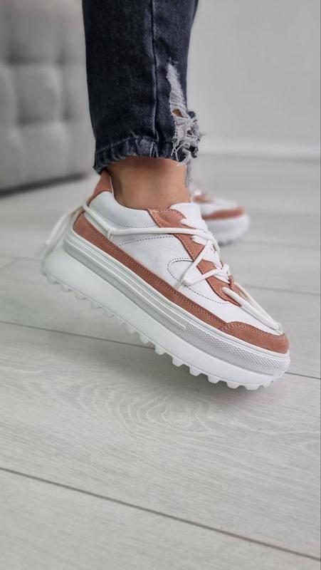 Жіночі кеди літні демісезонні кросівки з екошкіри біло-помаранчеві