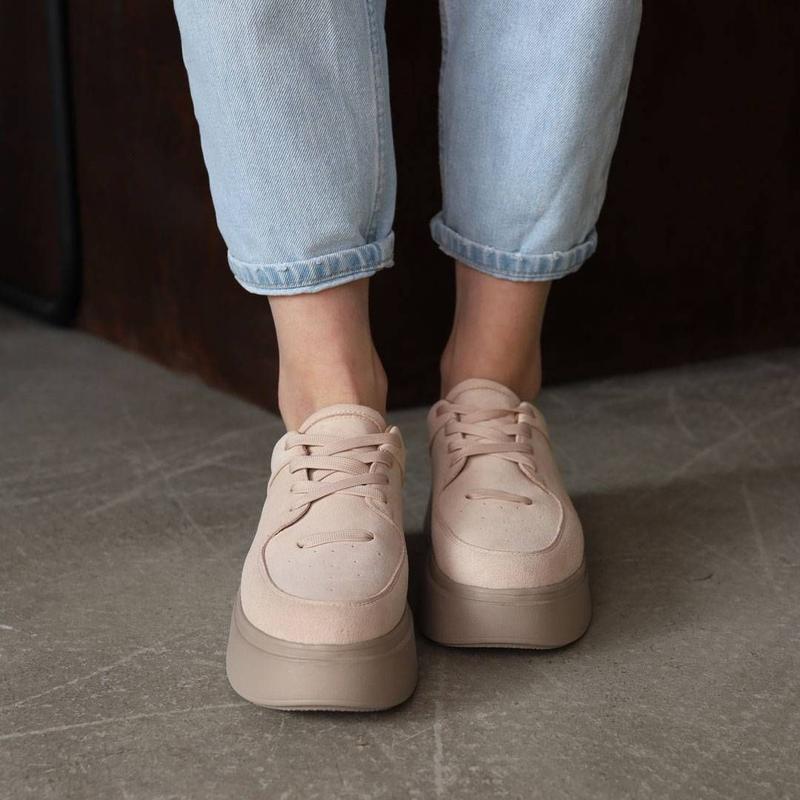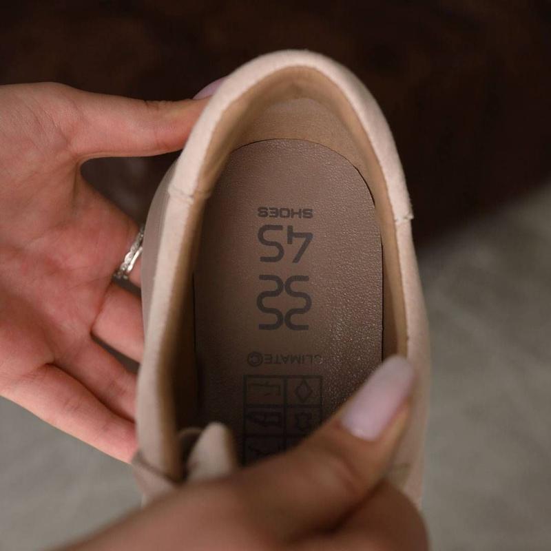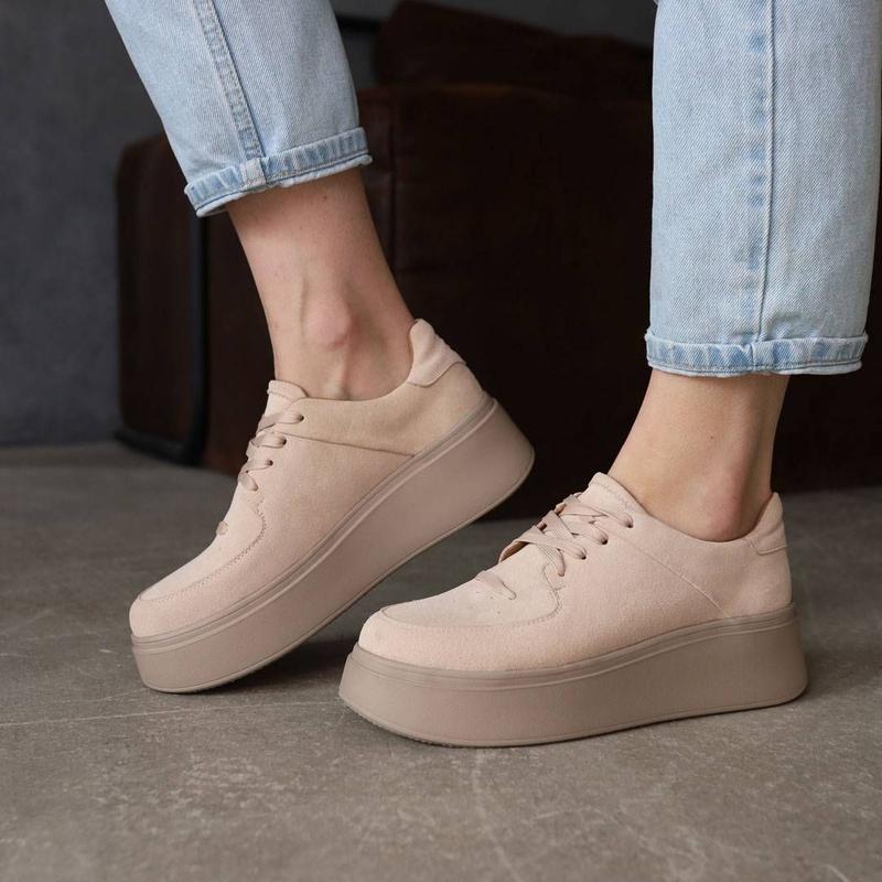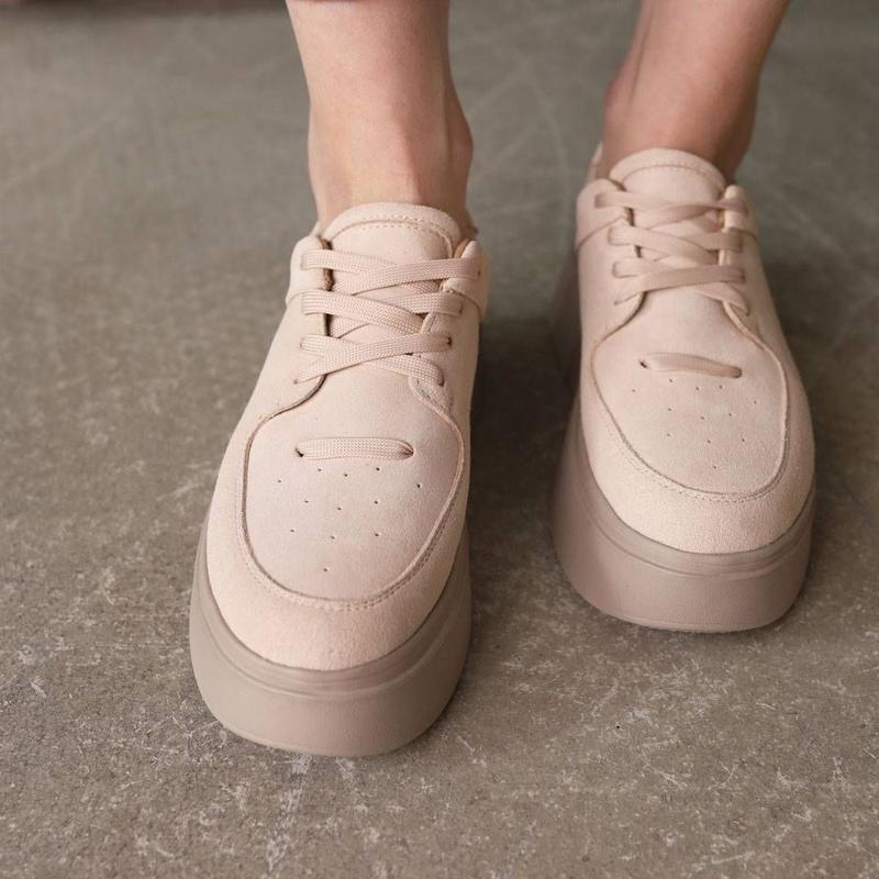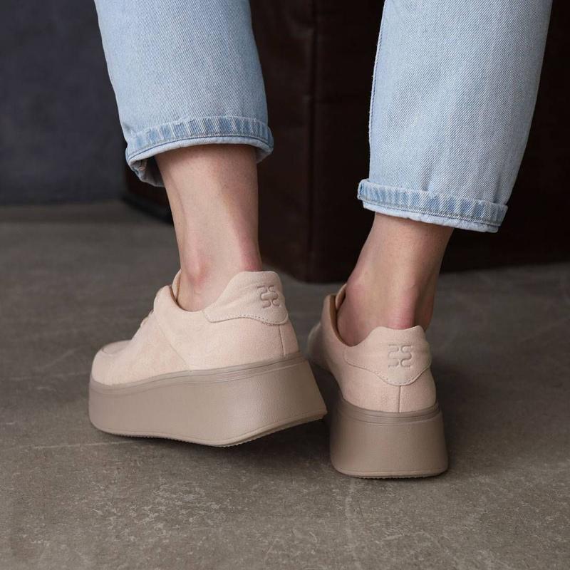 Класична модель кедів 4S 585123 в універсальному бежевому кольорі. Пара виготовлена з натуральної замші, легка, вага півпарку всього 310 грам. Внутрішня підкладка шкіряна, устілка шкіряна . Кеди універсальні, гарно виглядають на ніжках та чудово підкреслять Ваш образ.