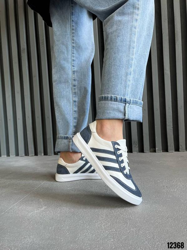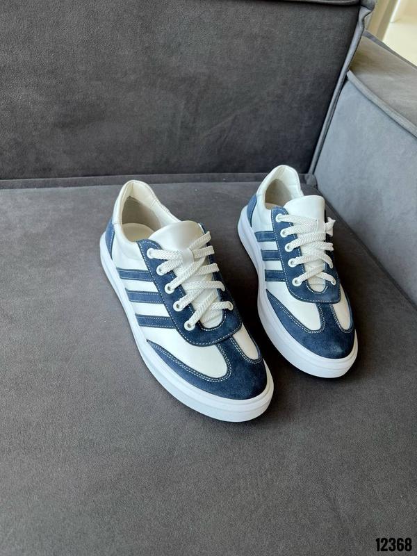 Код 12368 Кеди Натуральна шкіра+замшаКолір White+BlueПідошва 3см-2,5см Розмір у розмірВиробник Україна