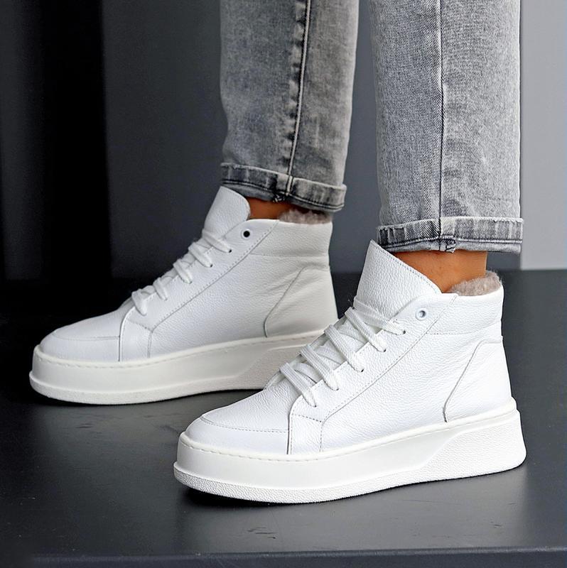 Шкіряні жіночі білі кеди зимові кросівки теплі на хутрі натуральне хутро натуральна шкіра