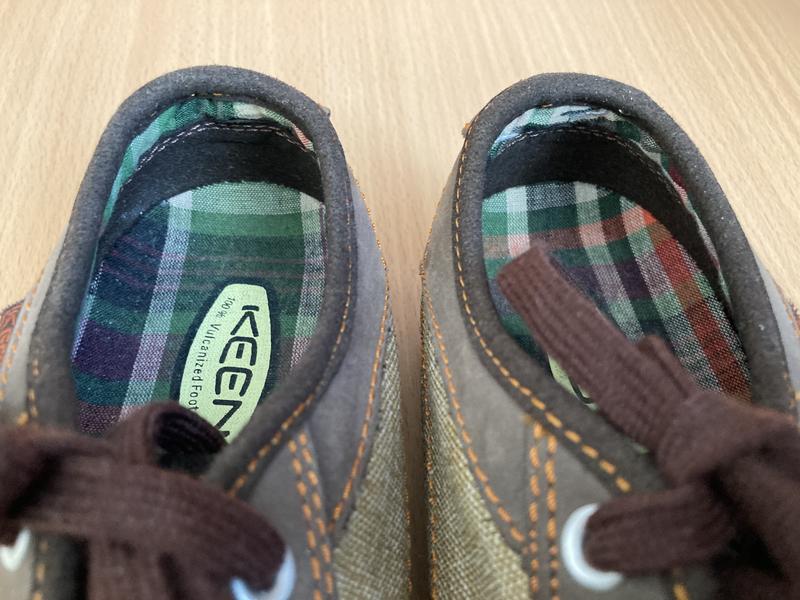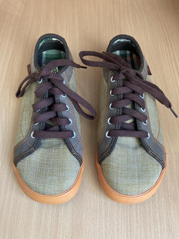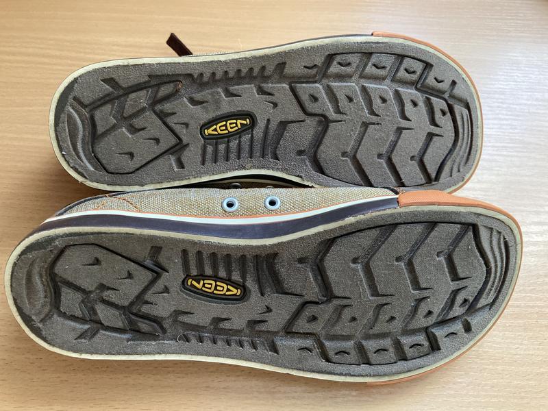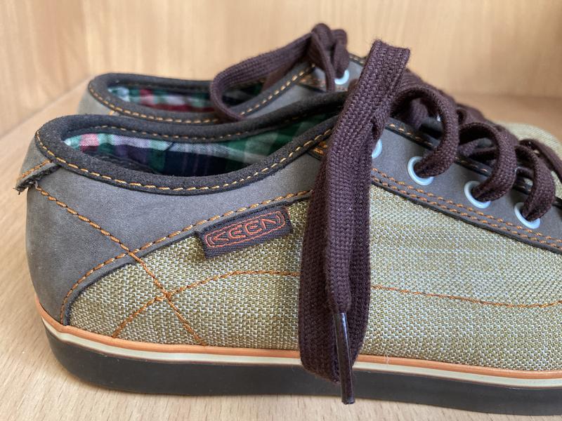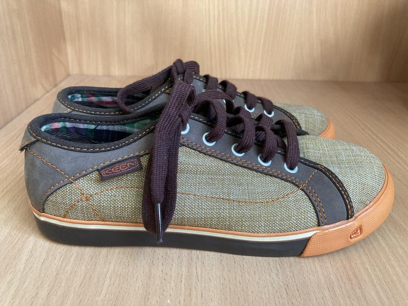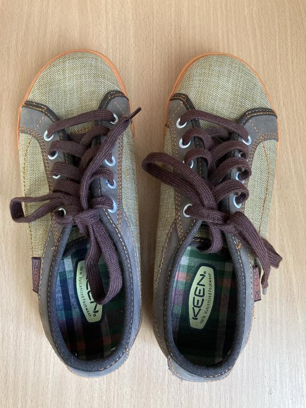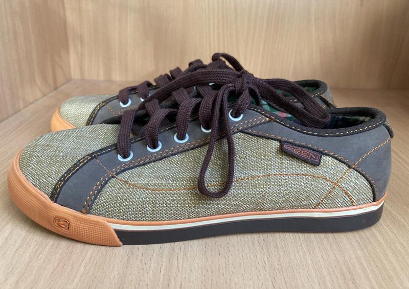 Нові класні кеди Keen.Довжина устілки до загину - 23 см, разом із загином - 24 см.Матеріал верху - поєднання текстилю та шкіри.Унісекс.