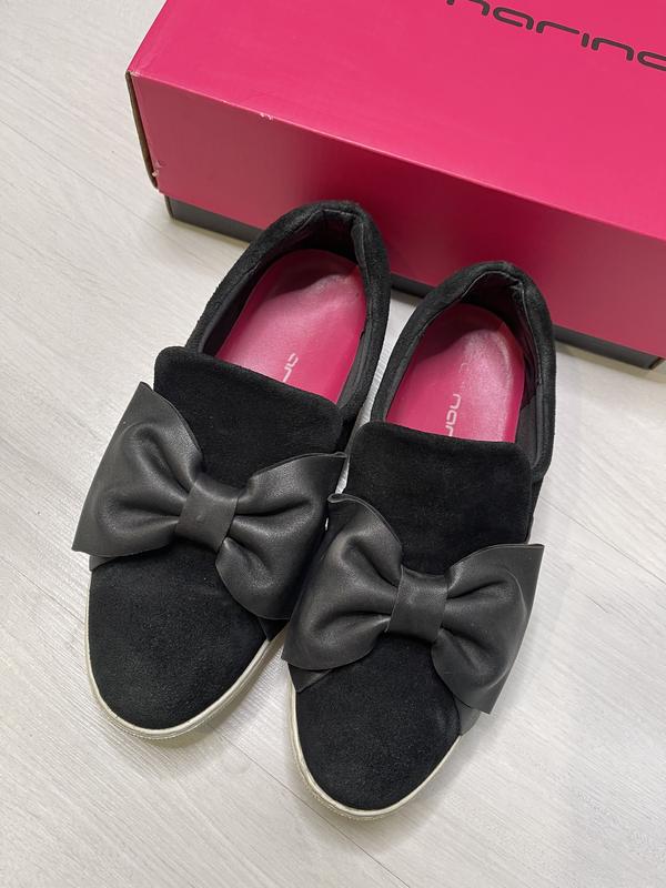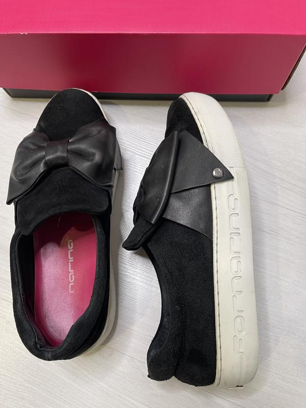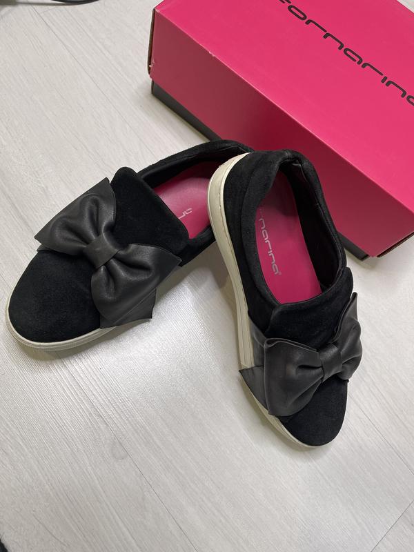 жіночі чорні замшеві сліпони в шкіряним бантом, чорні сліпони на білій підошві, fonnarina, md-fashion. Різний розмір. На лівий 38 і на правий 39(був на розтяжці)