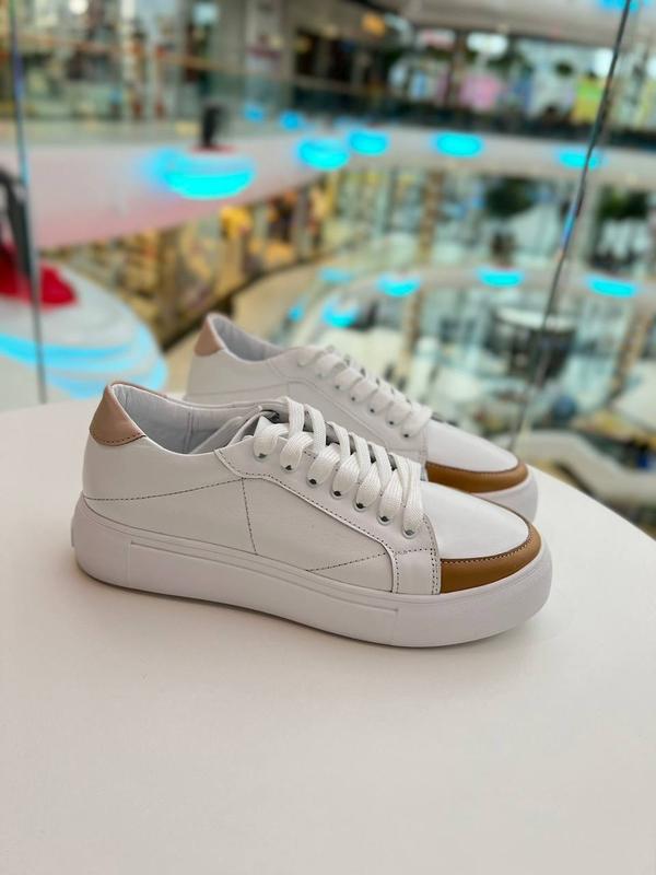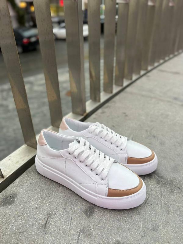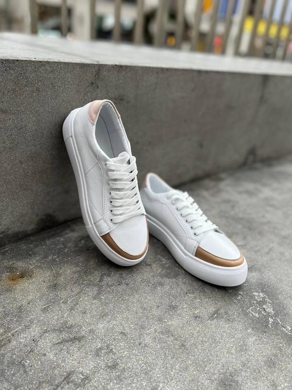 Білі бежеві жіночі кросівки кеди з натуральної шкіри шкіряні кросівки кеди під бренд