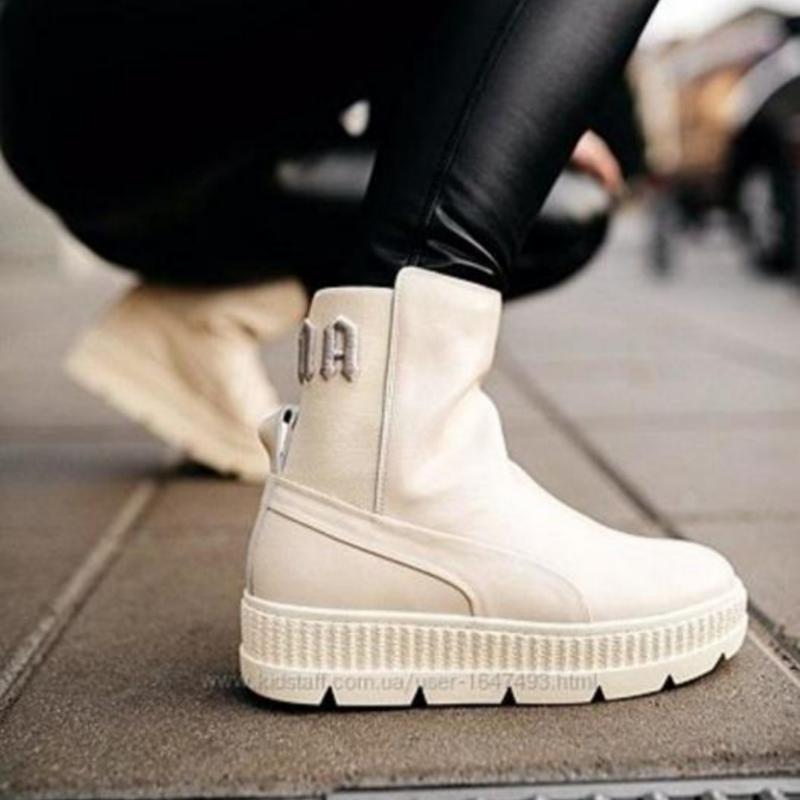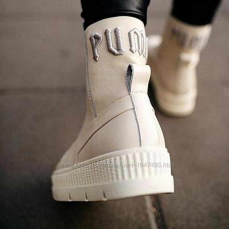 Женские ботинки Puma, вышедшие в рамках сотрудничества с Рианной — талантливой певицей, актрисой, дизайнером и креативным директором женской линейки бренда. Ботинки продолжают череду оригинальных релизов и представляют собой оригинальный дизайн на стыке высокой и уличной моды. В качестве основного материала используется высококачественная кожа. Ботинки обладают высоким силуэтом, и массивной подошвой с цепким протектором. Эффектное дополнение к образу, которое не оставит вас без внимания. Покупали в США. Оригинал 100%