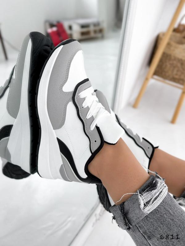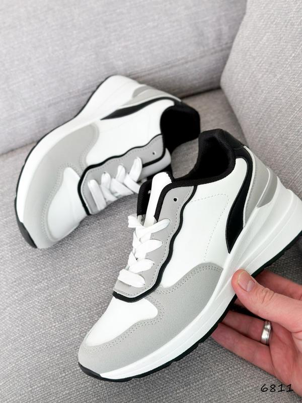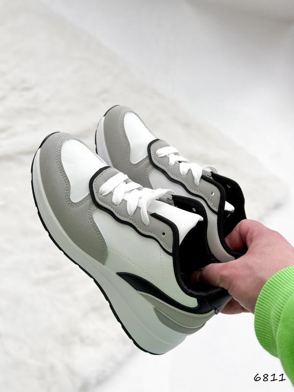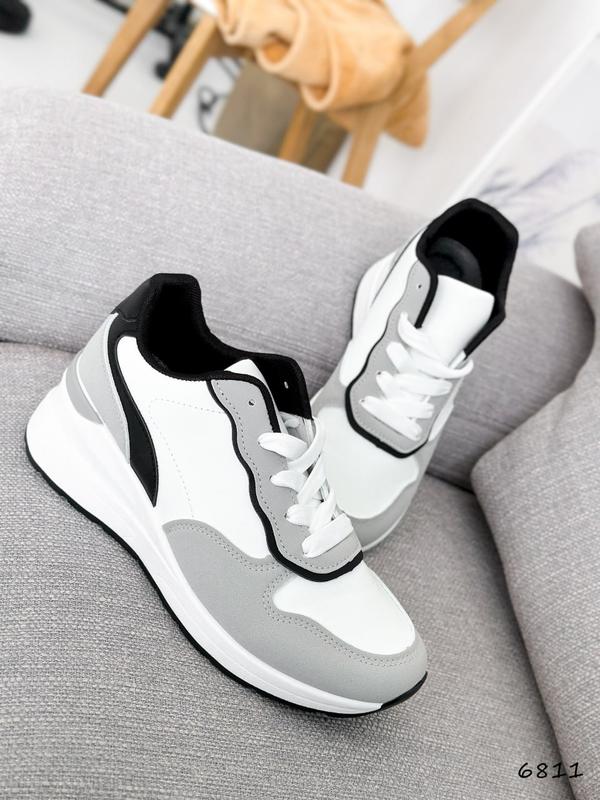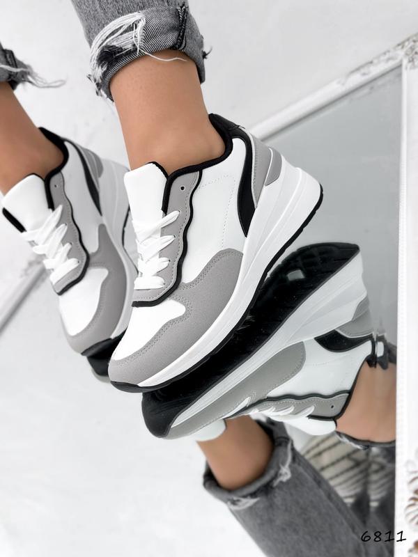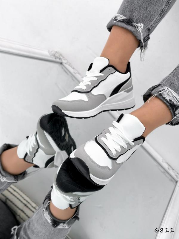 Код: 6811Матеріал: екошкіра + екозамшаКолір: білий + сірий + чорнийтанкетка: 6 см, платформа: 1,5 смвсередині текстильРозміри: 36-4036-23,5 см37-24 см38-24,5 см39-25 см40-26 см