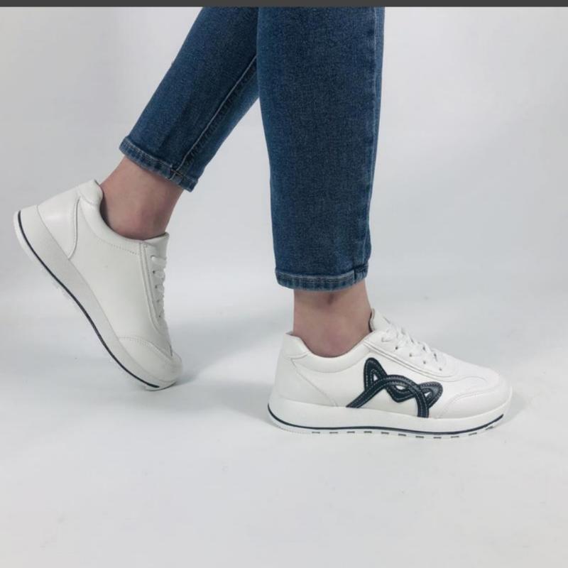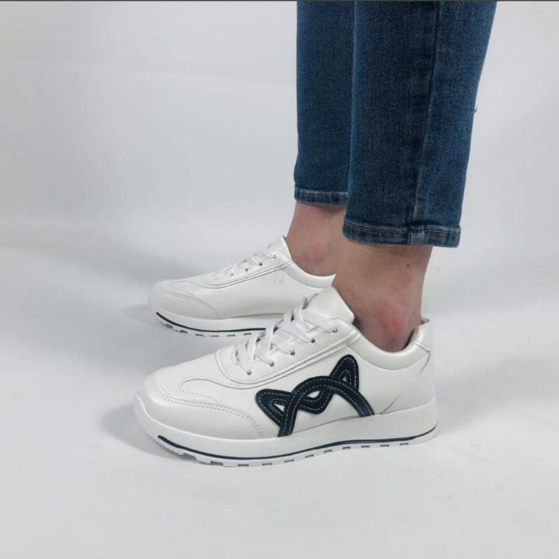 Кросівки білі з чорним на товстій підошві. Кеди весняні із екошкіри