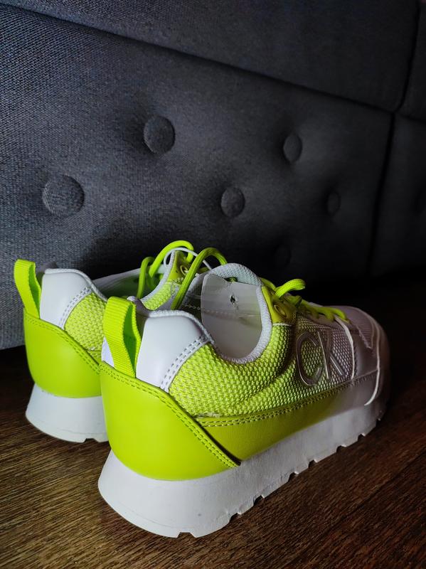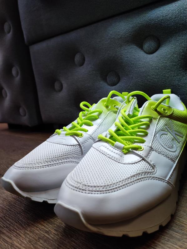 ♀️Жіночі кросівки від бренду Calvin Klein білого кольору з зеленою задньою частиною - це модний та стильний вибір для тих, хто хоче поєднати комфорт та елегантність.