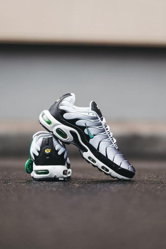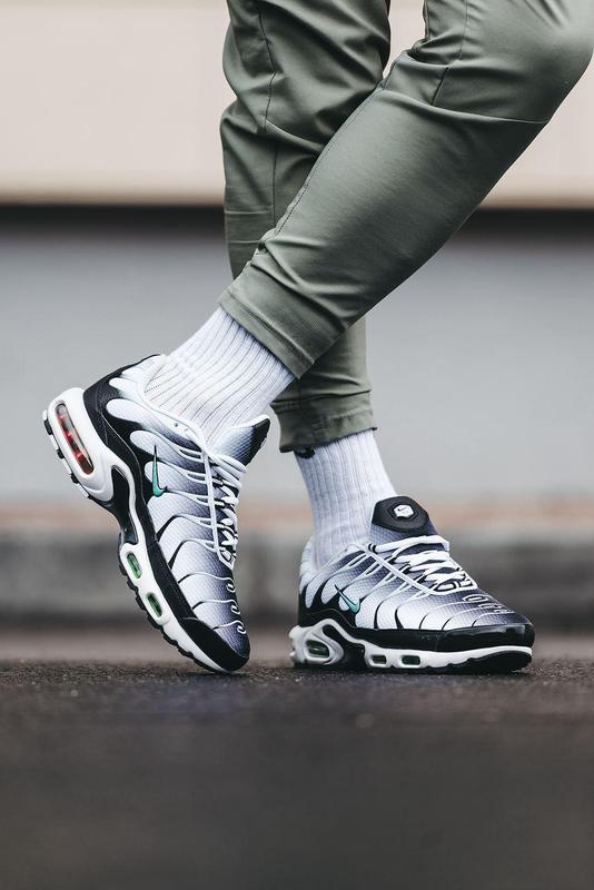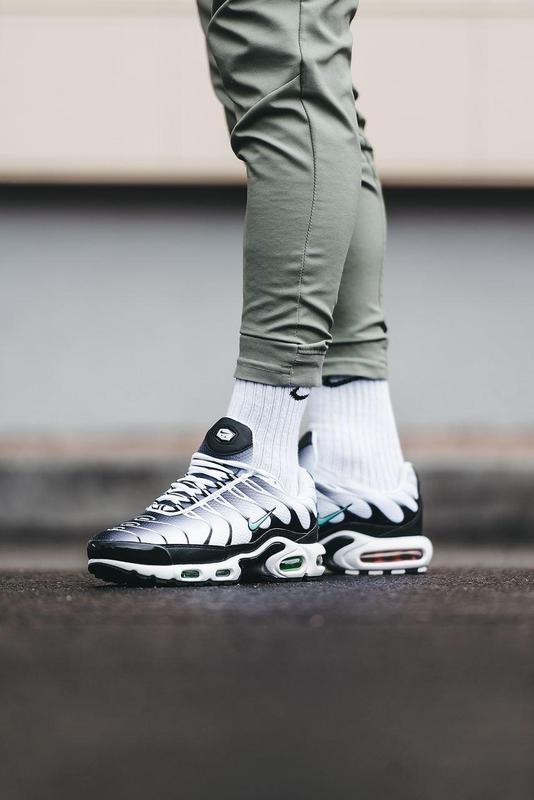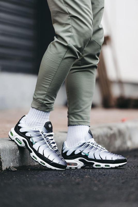 Кросівки Nike Air Max Plus TN Black White Green. Матеріал верху текстиль.Матеріал підошви подушка air. Колір моделі білий, чорний, салатовий. Цікросівки підійдуть під сезон всесезонні. Ці кросівки будуть служити вам довгоі радувати Вас.